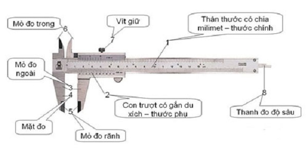 1. Hiểu được các bộ phận của Thước cặp cơ khí.